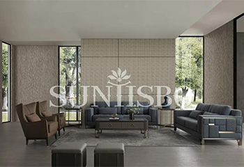 疏朗大氣的客廳空間,整體采用低明度的木紋色,在保留實木質(zhì)感同時,也為空間增添了一縷木香。沙發(fā)線條利落干凈,深邃而浪漫的配色仿佛將居者帶進(jìn)了海洋世界。藝術(shù)編制皮料搭配金屬底座,時尚大氣質(zhì)感撲面而來,將理性和感性完美結(jié)合,提高了居家的時尚格調(diào)。
