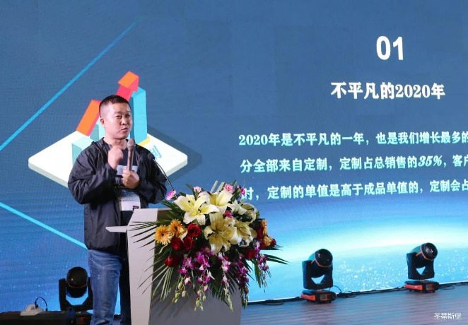 華燈璀璨的開場儀式,點(diǎn)燃了現(xiàn)場如火如荼的氣氛。九游娱乐Nineame官方网站集團(tuán)營銷總經(jīng)理陳玉偉先生對晚會進(jìn)行了主題發(fā)言,他對2020年的營銷工作進(jìn)行了總結(jié),并著重從營銷工作部署、重點(diǎn)項目開展、產(chǎn)品整合、拎包幫扶、渠道運(yùn)營和移動+定制整裝優(yōu)勢等方面對2021年的營銷工作做了全面的統(tǒng)籌規(guī)劃。同時,他還講解了“美國夢凱莎床墊”新品的產(chǎn)品工藝、市場優(yōu)勢、產(chǎn)品定位,使經(jīng)銷商對我們的新產(chǎn)品擁有更深入的認(rèn)識和了解。