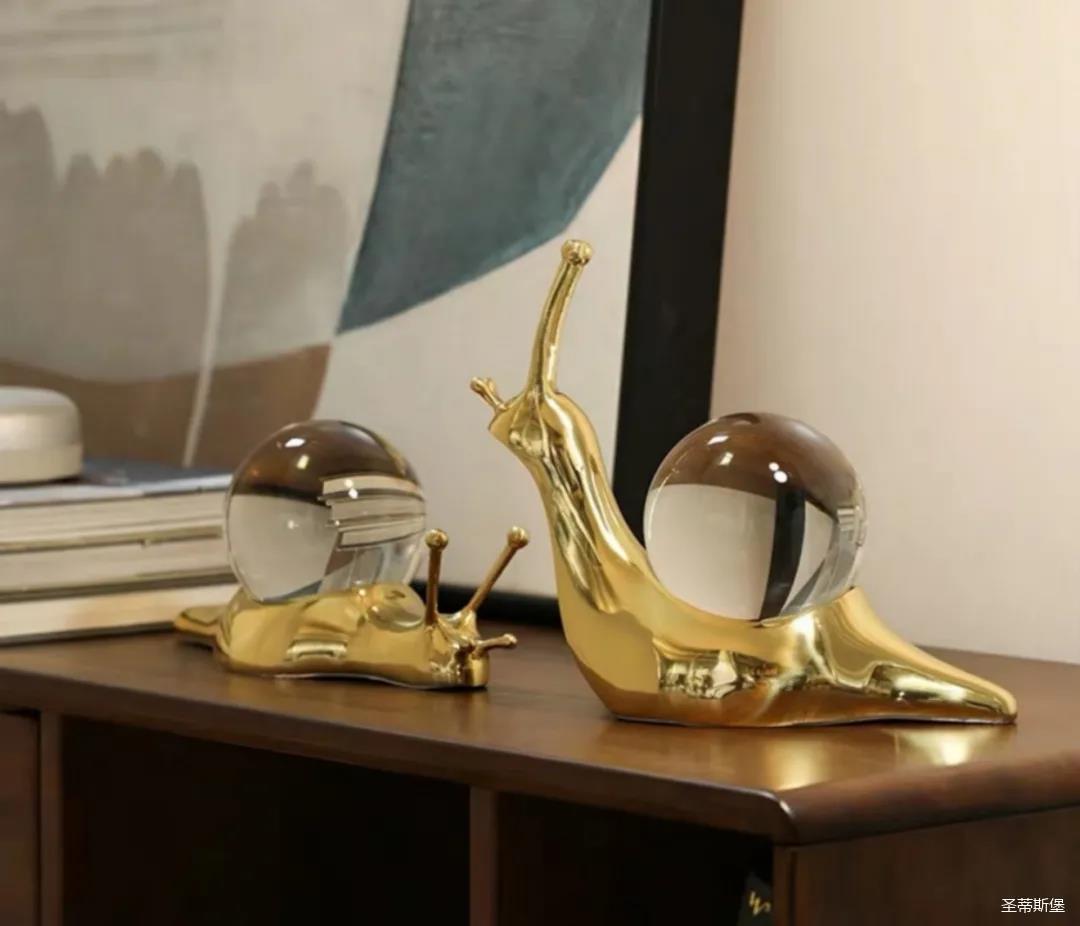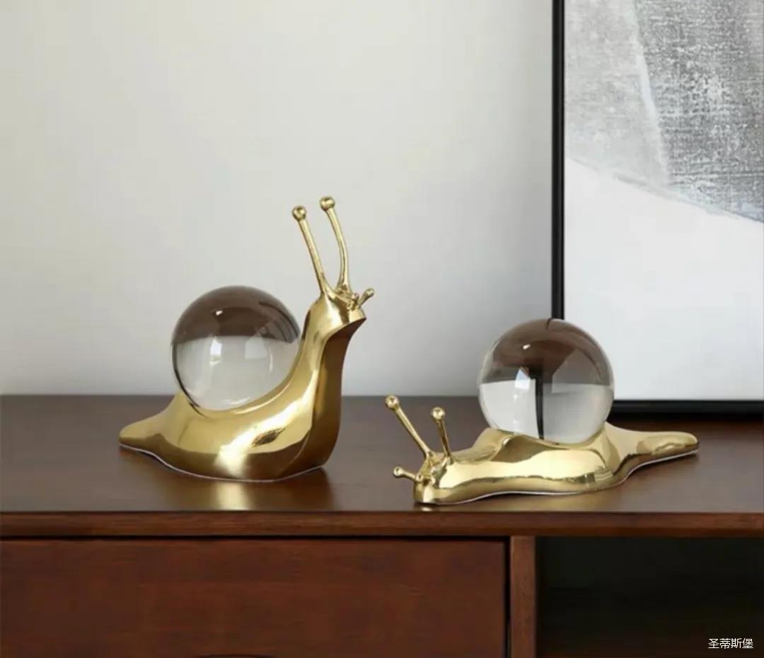 在黃銅材質上勾勒出蝸牛流暢的肌肉線條,描摹蝸牛攀爬蠕動與站立眺望的姿態(tài),加上觸須伸縮,豐富而逼真的細節(jié)制作,生動有趣。