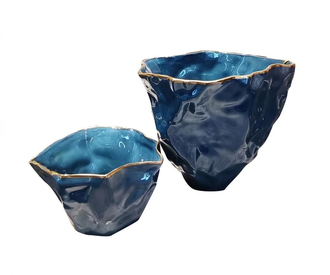 器口形狀各異,摒棄了傳統(tǒng)陶藝的方圓設計,引領中西結合陶藝的時尚特性,金邊鑲嵌,運用瓷器染色工藝,由深至淺洗染,以分明暗轉折。