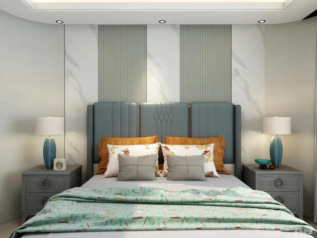 主臥的木飾護(hù)墻配以淺綠與魚(yú)肚白相間,色彩清新自然,層次分明。實(shí)木質(zhì)感與清新色彩,為休憩時(shí)刻注入強(qiáng)烈的氛圍感與隨性感。