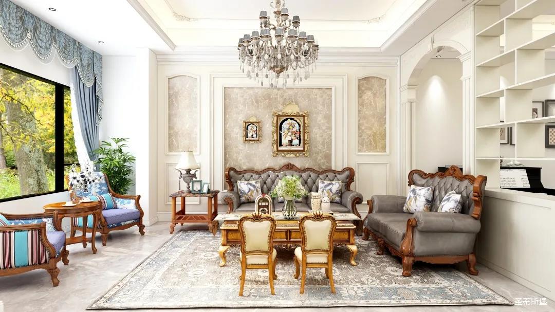 設(shè)計師將浪漫與莊嚴(yán)的氣質(zhì)從空間細(xì)節(jié)凸顯,半圓形的拱門和轉(zhuǎn)角的石砌,盡顯雍容華貴。綠植擺設(shè)清新不落俗套,白色線條使入墻空間層次感更為強(qiáng)烈,實木與歐美裝飾搭配的拱門,挑高的大面窗客廳,都令人心神蕩漾。