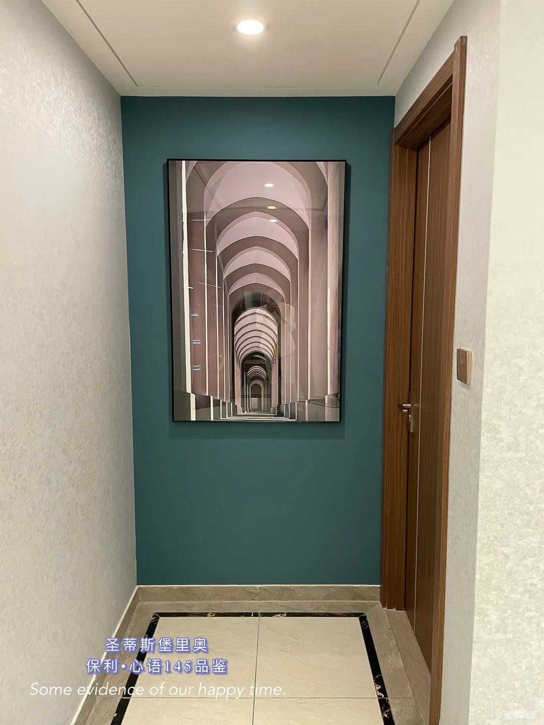 ▲進門有個小過渡“玄關(guān)”,幾步就可到客餐廳中心區(qū),由于玄關(guān)空間較小。所以以一幅抽象畫直接營造入戶氛圍!