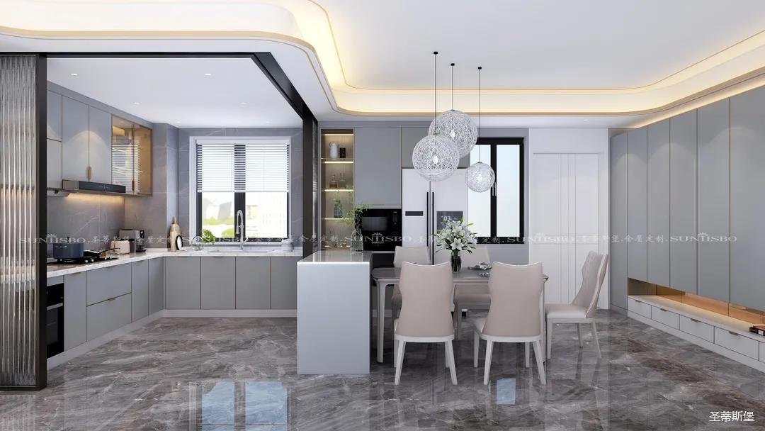 藏是漏的基礎(chǔ)。在社交軟件流行的當(dāng)下,親情之間也逐漸越來越遠(yuǎn),推演到空間,餐廚之間需要的不再是實墻的阻隔,而是用長虹玻璃代替,開合之間,他的認(rèn)真,你的可愛,都能在不經(jīng)意間盡收眼底。
