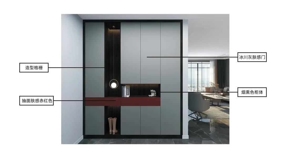 整體配色簡約時(shí)尚,花色可選性多;材質(zhì)上采用新型高級材料——歐松板,通過UV漆工藝表面形成超級膚感膜,使接觸面舒適細(xì)膩。同時(shí)使用線條感簡潔利落的拉手作為設(shè)計(jì)元素,子母拉手的設(shè)計(jì)別具一格,體現(xiàn)了設(shè)計(jì)師的用心;搭配燈光和功能件,使產(chǎn)品極具展示效果與功能性。