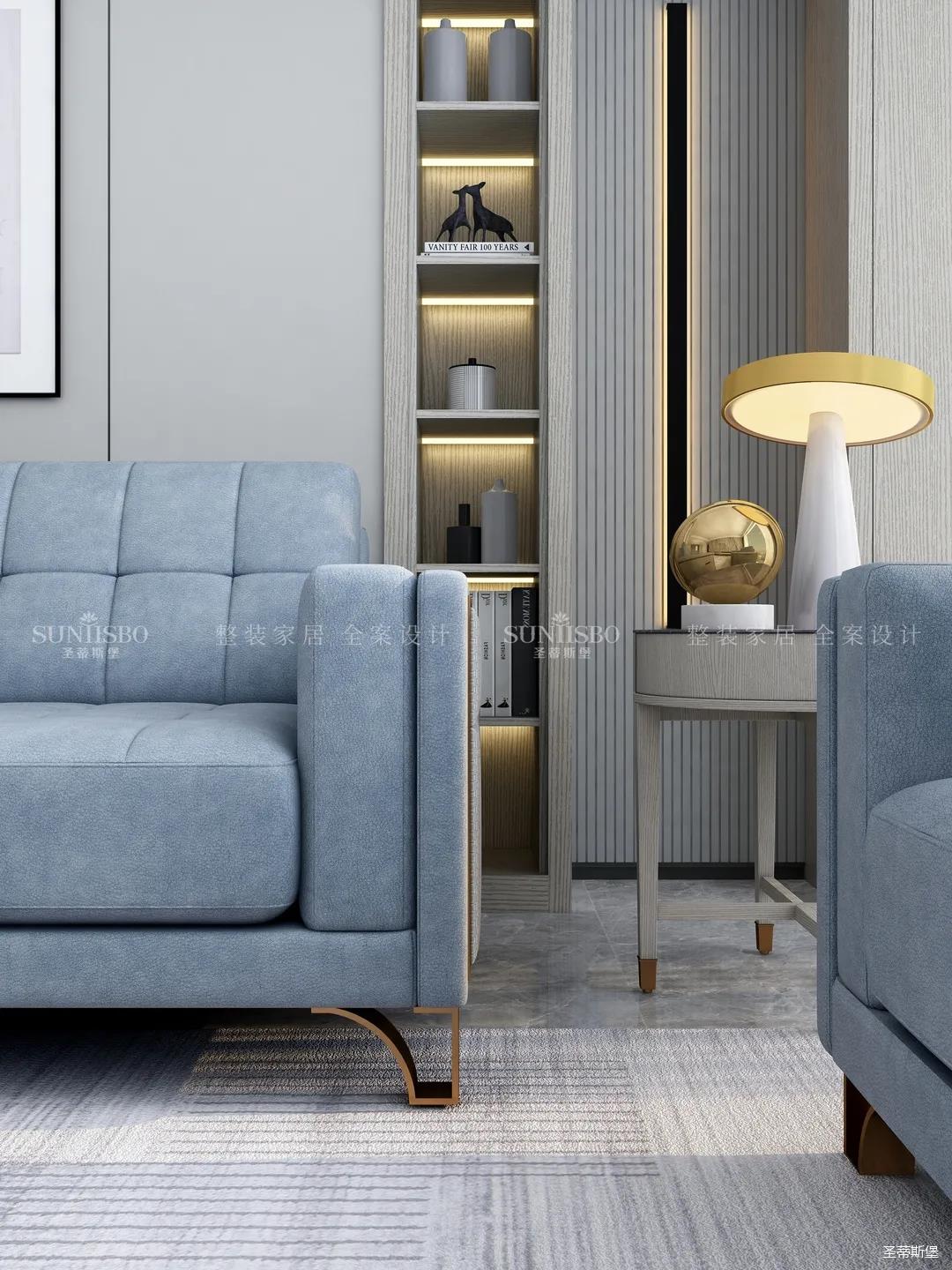 時尚簡約與現(xiàn)代簡奢的雙重美學(xué)在客廳中發(fā)揮的淋漓盡致,飽滿填充的親膚磨砂皮材質(zhì)沙發(fā),貼心呵護(hù)身體曲線,回家即可來一次舒適愜意的SPA。圍繞著時尚、舒適家的設(shè)計,剔除了傳統(tǒng)簡奢金屬堆砌,打造定制的實木柜體,在深灰與淺灰之間切換有度,盡顯大方自然。